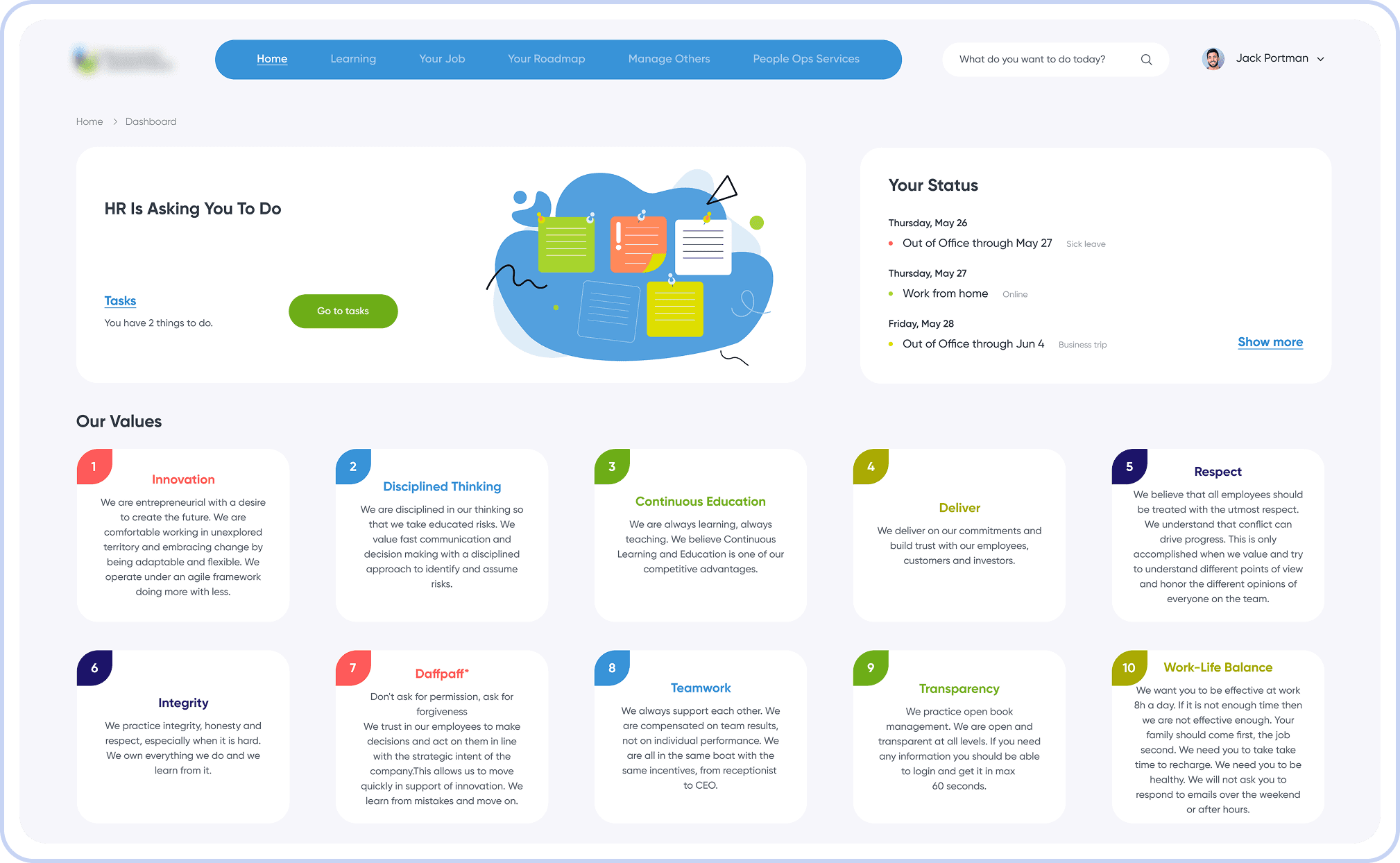 The platform unified everyday workflows across HR, booking, learning, and other internal tasks into one seamless environment, creating a solid foundation that can be expanded and scaled over time as the company’s processes continue to evolve.