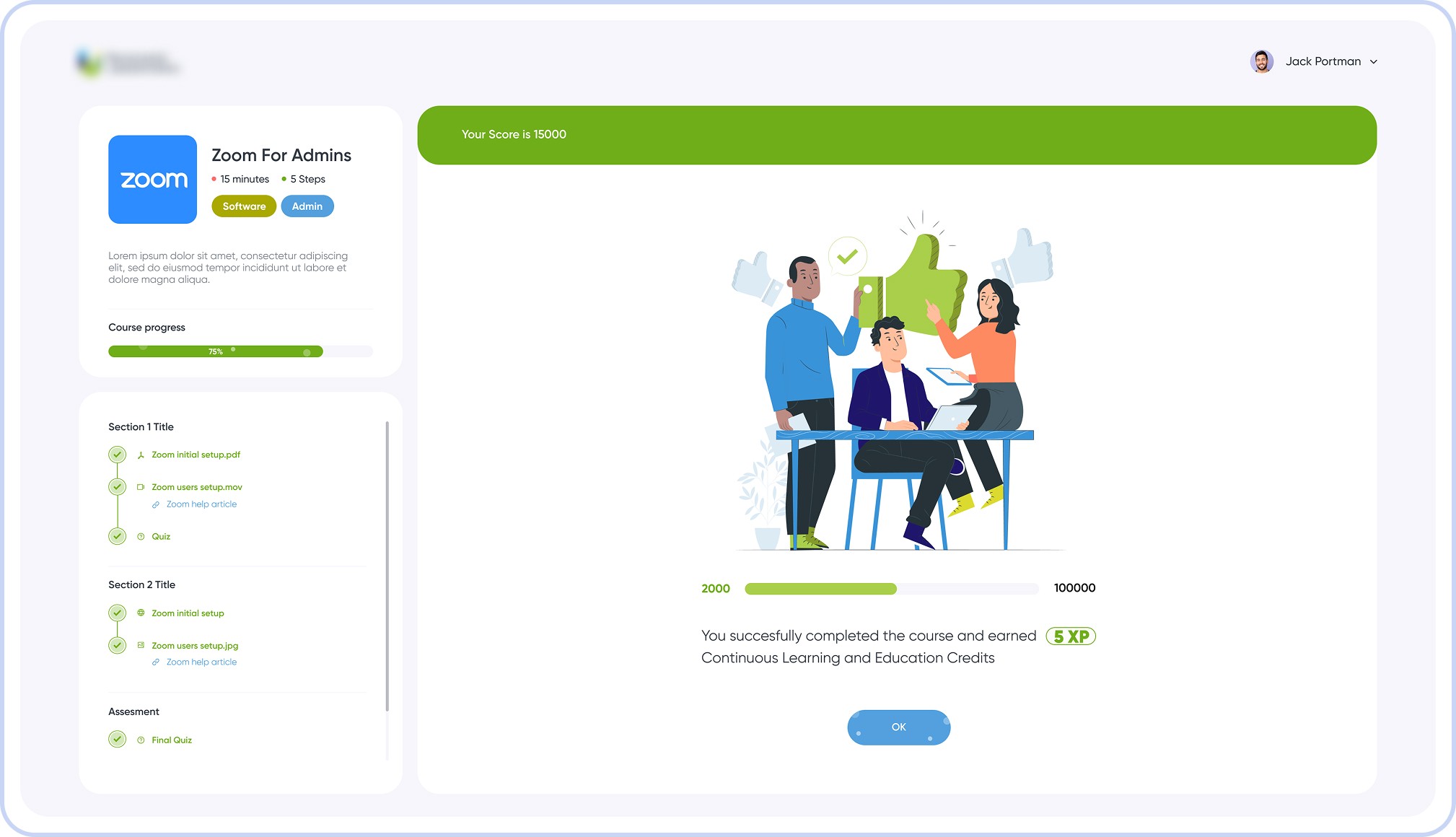 Earn points for completed learning or HR tasks and exchange them for company perks or digital content