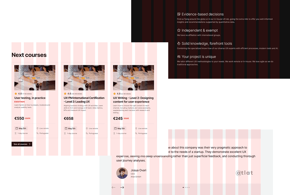 We then benchmarked competitors and inspiration websites, identifying patterns in premium UX consultancy design.