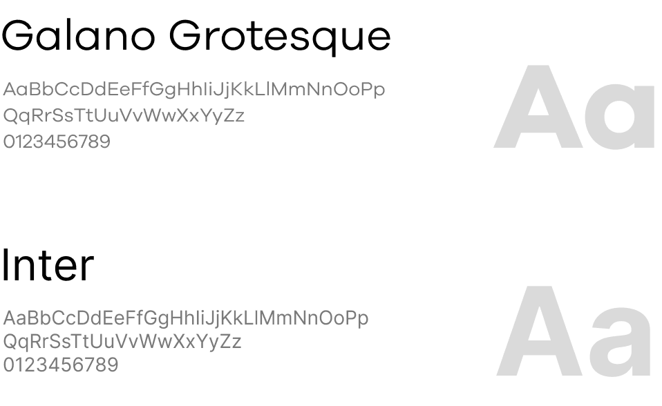 Replaced Galano Grotesque with Inter — a modern, neutral font that conveys clarity and professionalism. Its geometric structure and digital readability supported a more premium visual tone.