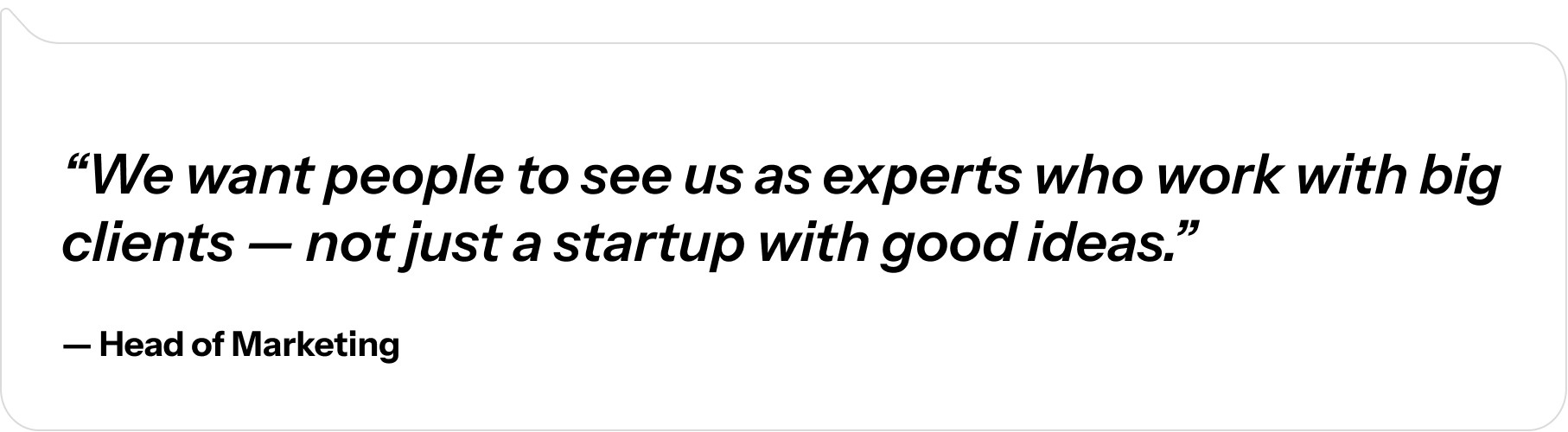 We began with internal interviews across teams (marketing, sales, leadership).